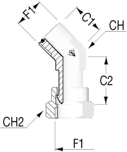 45° ORFS Male 1 3/16" Female 1 3/16"